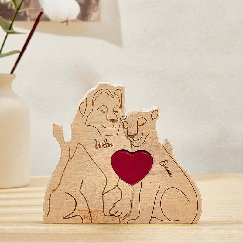 Personalisiertes Löwen-puzzle Aus Holz, Individuelles Löwen-familiennamen-puzzle, Heimdekoration, Geschenke