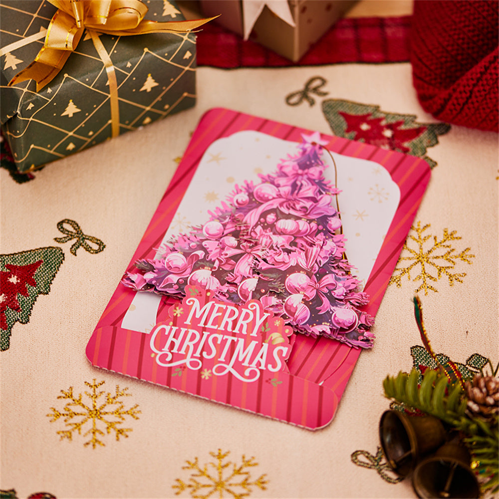 Machen Sie die Weihnachtszeit mit einer Pop-up-Karte zu etwas ganz Besonderem. Bei Bedarf können Sie die 3D-Grußkarten mit Ihren eigenen Worten und den besten Wünschen und Liebe ergänzen. Der Geschenkempfänger wird von diesem einzigartigen Geschenk mit seinem zarten Design und der äußerst exquisiten Verarbeitung angenehm überrascht sein.