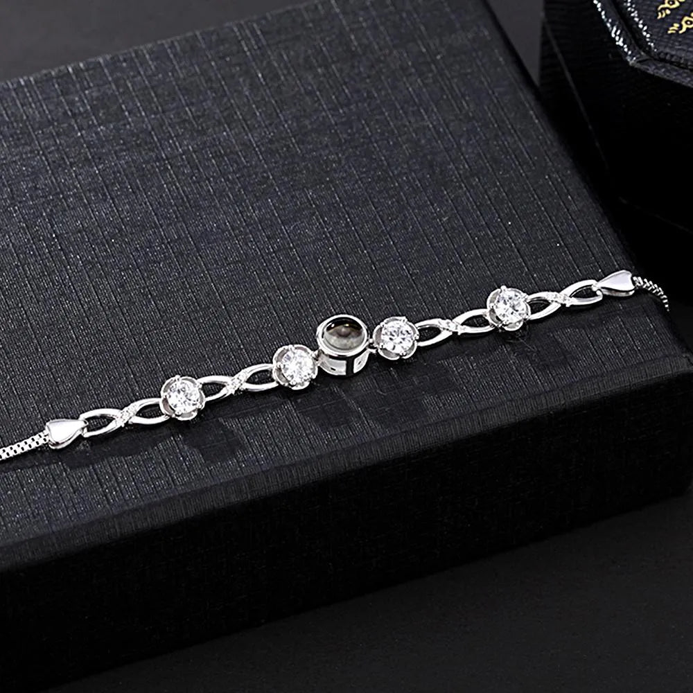 Dieses individuelle Projektionsarmband mit der Gravur Ihres Lieblingsfotos ist ein perfektes Accessoire für Sie oder ein bedeutungsvolles Geschenk für jemanden, den Sie lieben, und die Neuheit wird Ihren Geschenkempfänger und alle, die es sehen, mit Sicherheit überraschen. Sie werden beeindruckt sein, wie lebendig und lebendig die Erinnerung erhalten bleibt. Kein anderer Schmuck kann diesen Effekt erzielen.