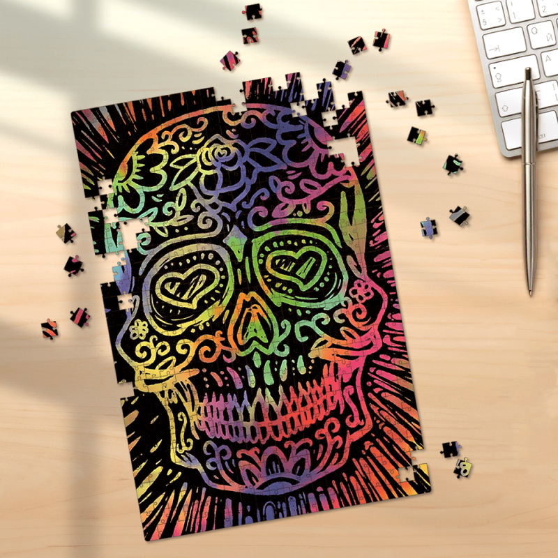 Psychedelisches Puzzle Personalisiertes lustiges Puzzle buntes Schädel Puzzle