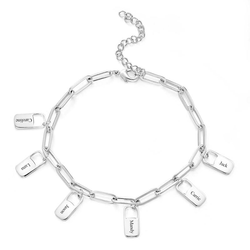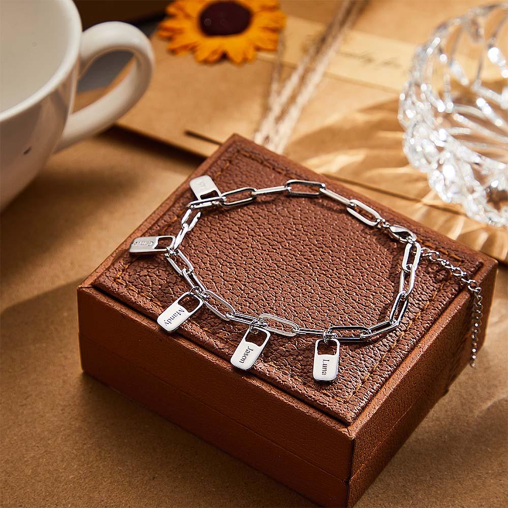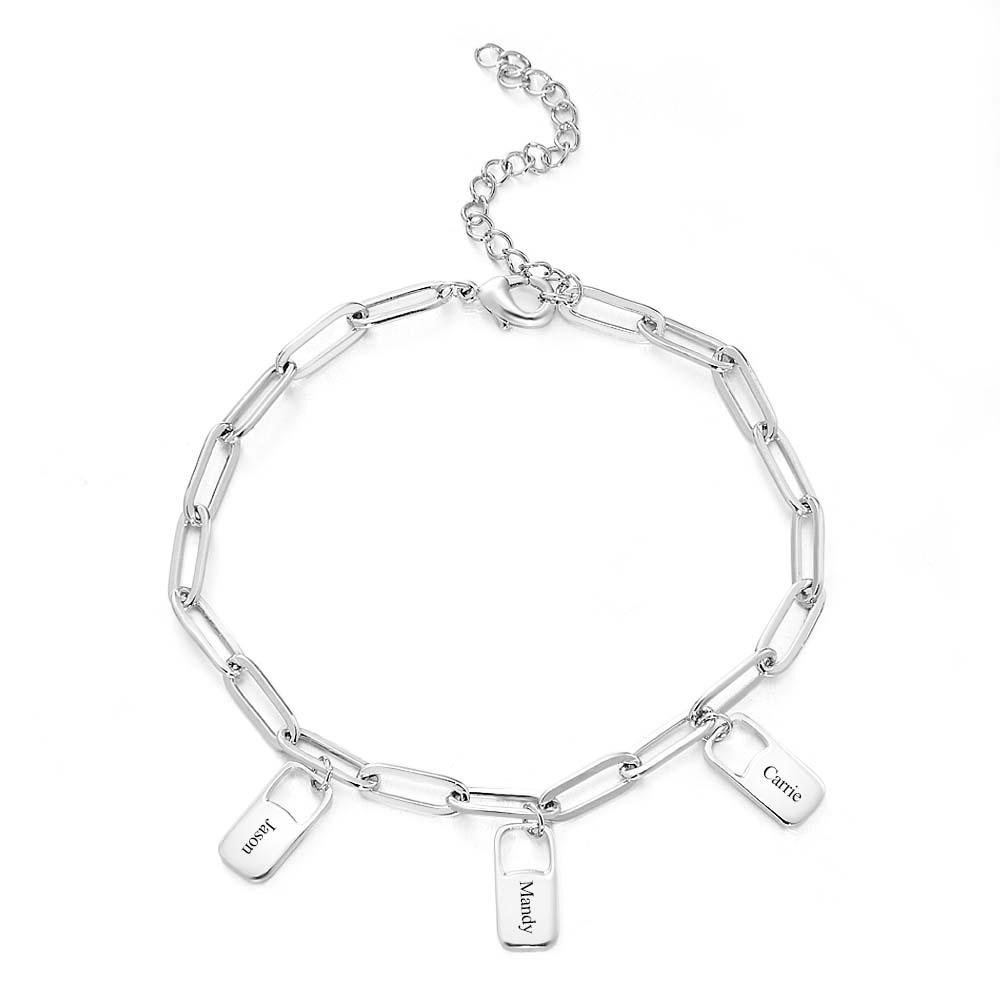 Personalisierte Namen Kette Link Armband mit 1-6 Charme benutzerdefinierte Familiennamen Armband-Silber
