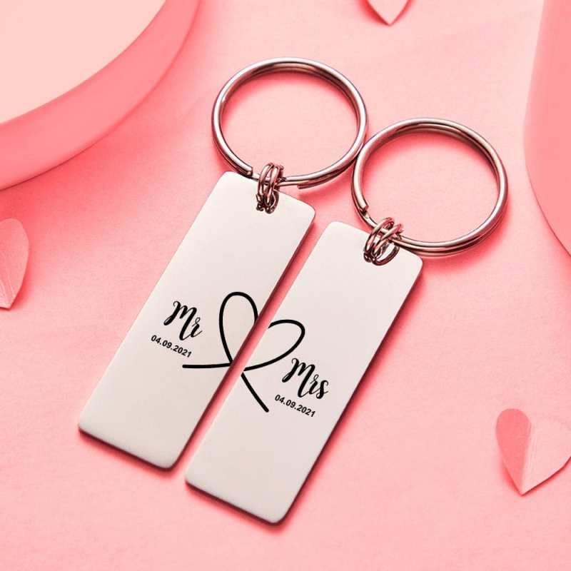Schlüsselanhänger mit Datum Personalisierte Schlüsselanhänger für Paare Valentinstag Geschenke
