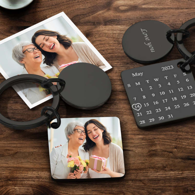 Schlüsselanhänger mit Foto personalisierte Kalender Gravur Schlüsselanhänger für Muttertag Geschenk- Schwarz