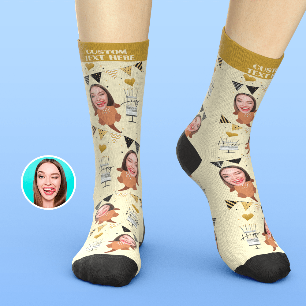- Drucken Sie Ihr Foto auf Socken und kreieren Sie das perfekte Geburtstagsgeschenk.