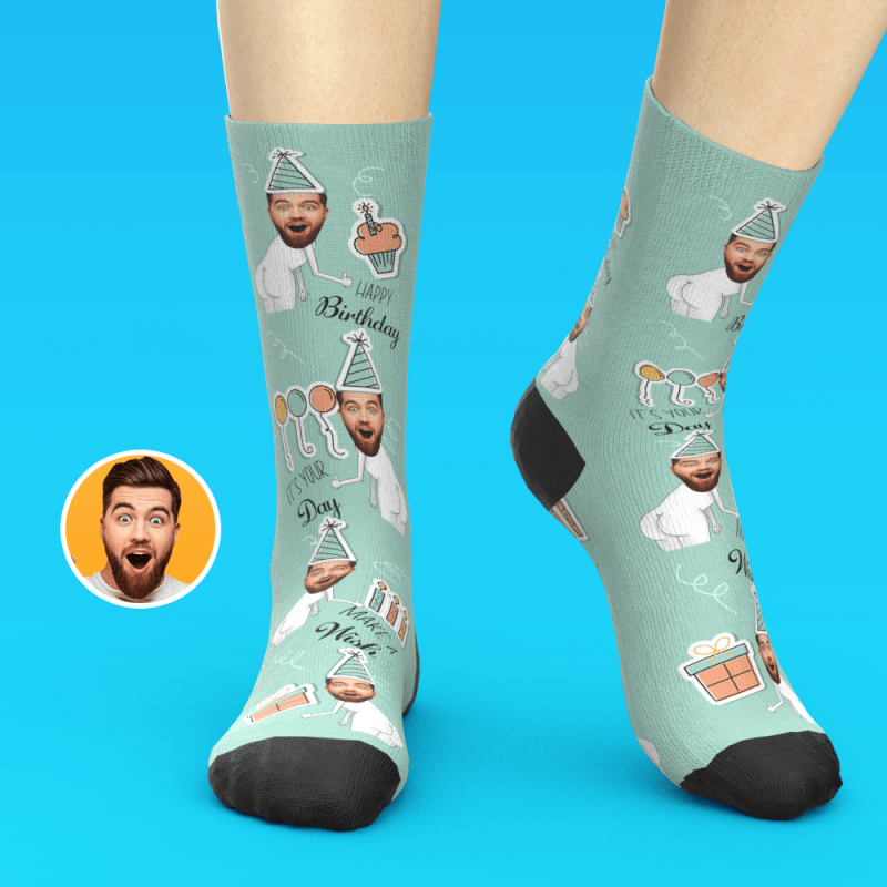 - Drucken Sie Ihr Foto auf Socken und kreieren Sie das perfekte Geburtstagsgeschenk.