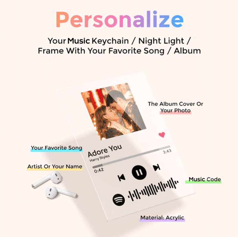 - Wählen Sie Ihr Lieblingslied/-album und verwandeln Sie es in einen wunderschönen Schlüsselanhänger, einen Plaque-Rahmen, einen Schlüsselanhänger + Plaque-Rahmen und eine Nachtlampe. Sie können einen Spotify-Code hinzufügen! Sobald Sie den Code auf Spotify scannen, wird Ihr Song sofort abgespielt. Sie können automatisch nach Songtiteln und Interpreten suchen und auch Songs empfehlen. Sie können die von Ihnen gestalteten Fotos anpassen und hochladen, Sie können auch auswählen Das Song-Album-Cover bieten wir Kunden mit freier Wahl. Bitte beachten Sie, dass diese Plaketten aus einer klaren Acrylfolie bestehen, die Sicherheit während des Transports gewährleistet und viel haltbarer als Glas ist, sie bestehen nicht aus Acryl.