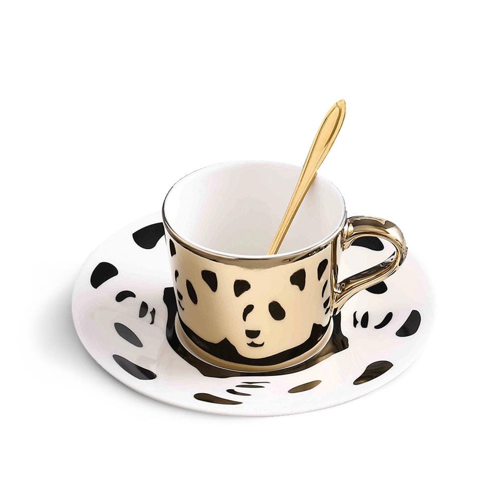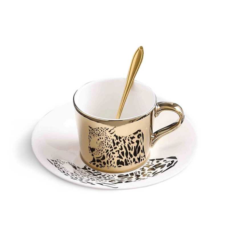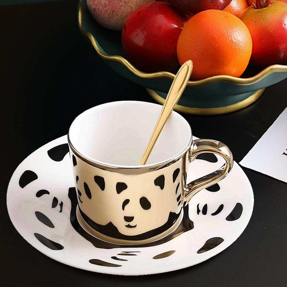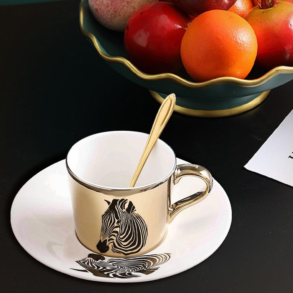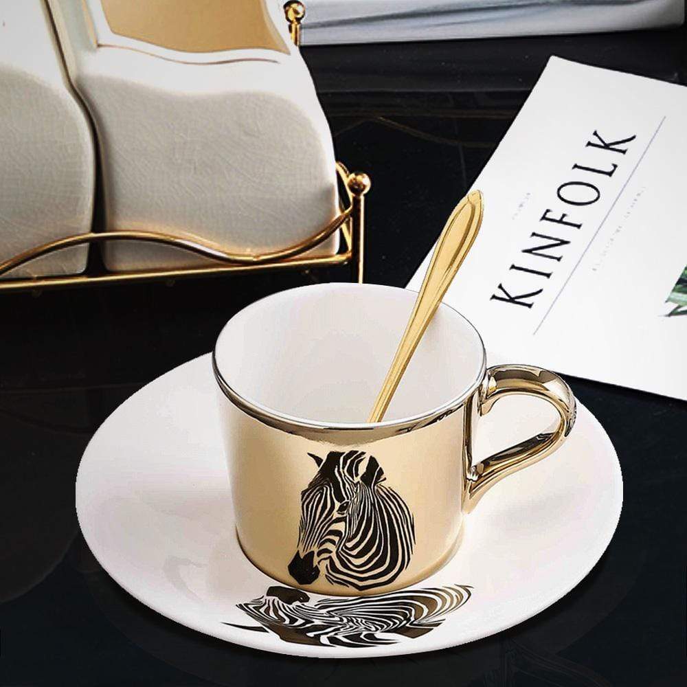 Einzigartiges Spiegelhandwerk, wenn sich die Tasse auf der Untertasse befindet, spiegelt die Oberfläche der Tasse ein interessantes Muster wider.
