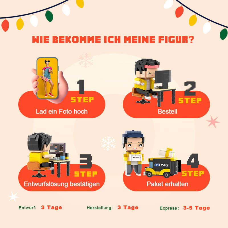 Ein völlig persönliches Geschenk. Erweckt die Person auf dem Foto in Form eines Bausteine Figur zum Leben. Viel Spaß beim Zusammenbauen mit deinen Liebsten!