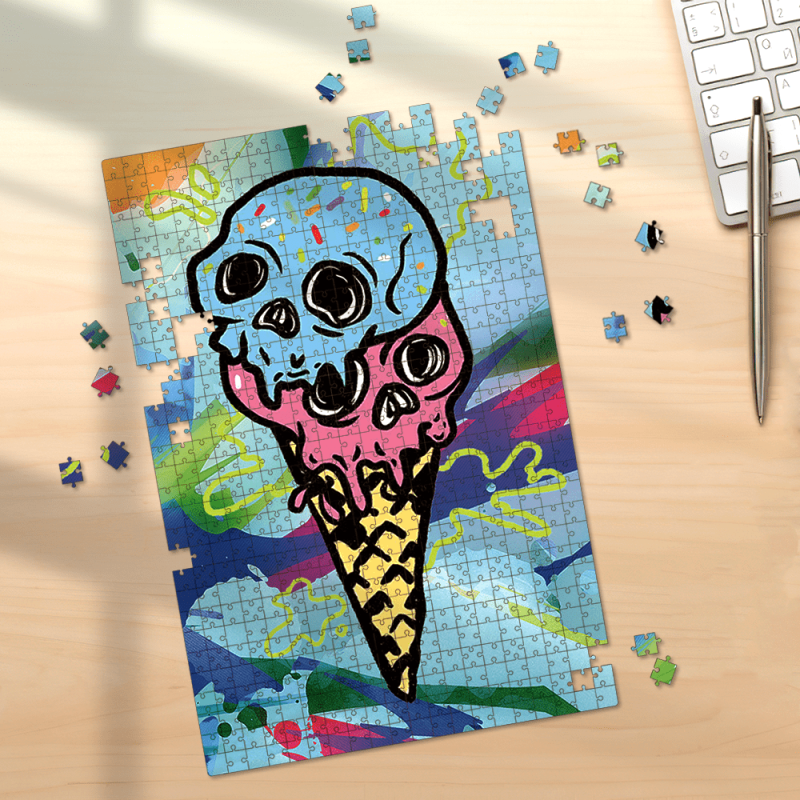 Trippy Puzzle Personalisiertes lustiges Puzzle Schädel Eiscreme Puzzle
