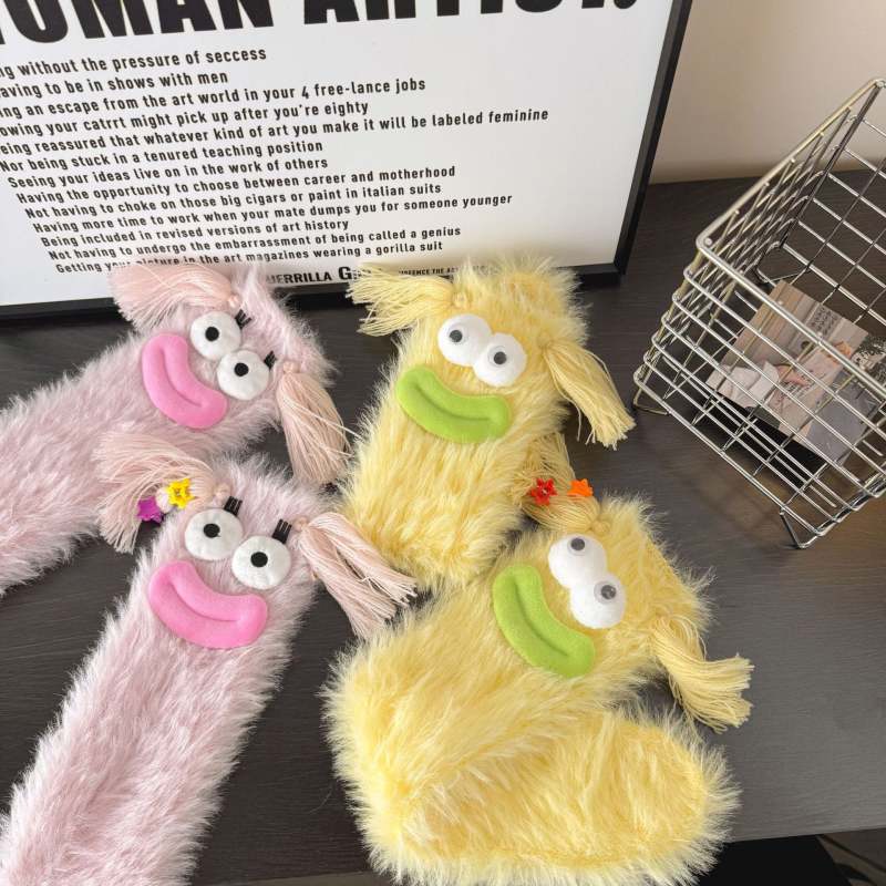 Hässliche Und Süße Plüschsocken Mit Großen Augen, Korallenfleece, Für Den Winter, Verdickte Warme Socken