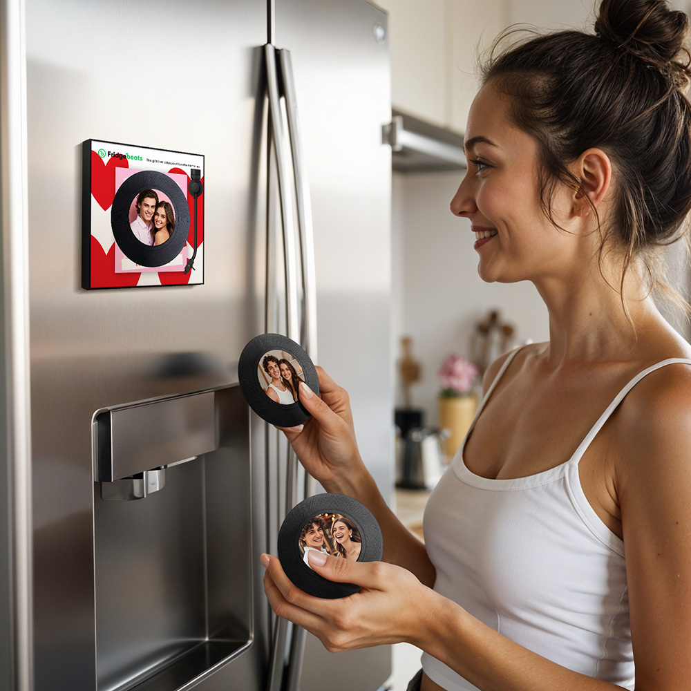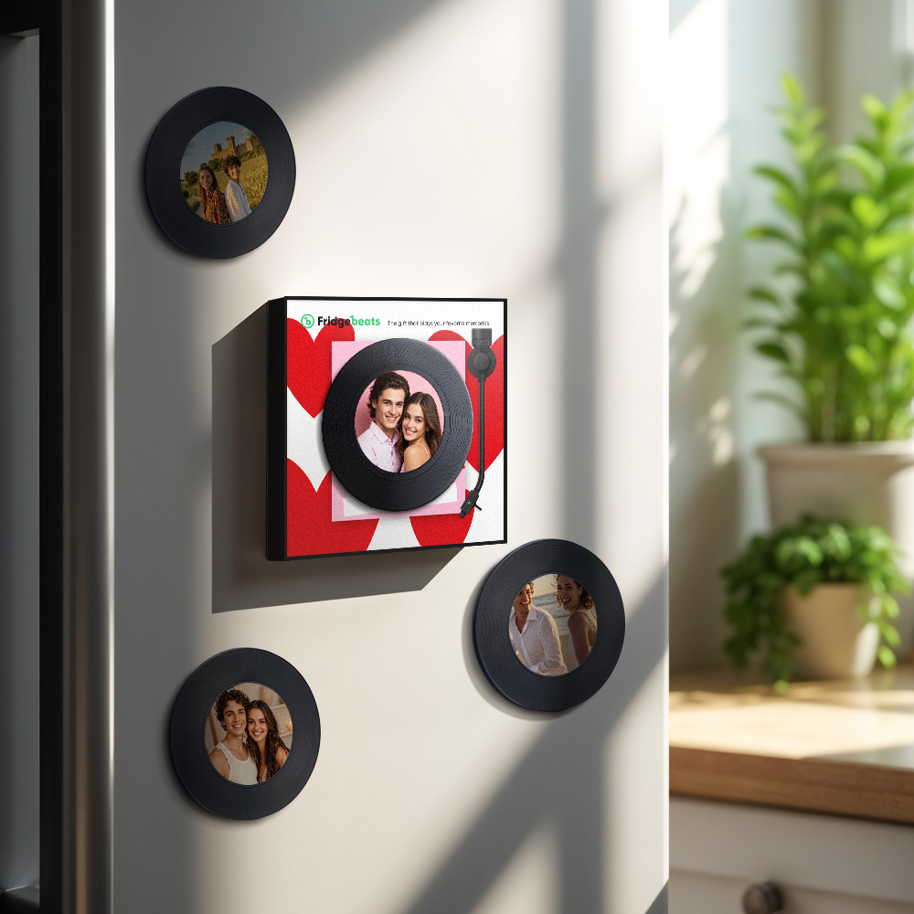 Customized Romantic Singing Refrigerator Magnet - The Best Gift Bring your favorite music to life with our Customized Album Fridge Magnet! This innovative magnet is more than just a decorative piece; it's a functional, interactive device that lets you play your favorite songs directly from your fridge. Whether you want to listen to a relaxing playlist while cooking or enjoy your favorite music while grabbing a snack, this fridge magnet makes it all possible.