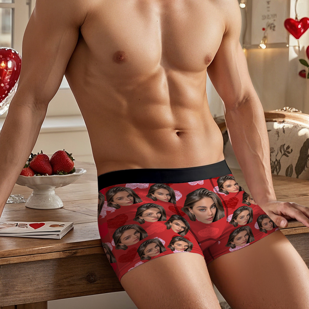 Valentinstag Geschenke Custom Big Face Boxershorts Bunte Bund Hellblau Boxer Briefs Rot Und Rosa Herzen Geschenke Für Ihn