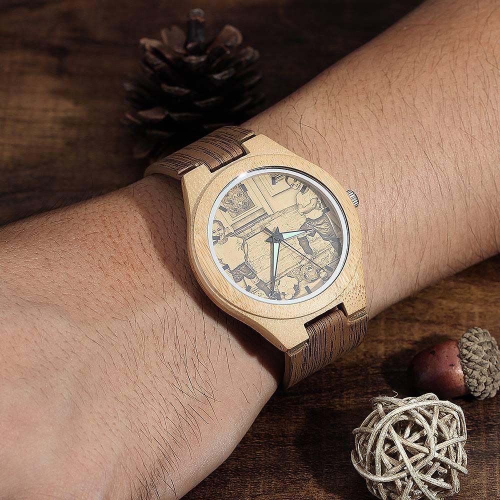 Vatertagsgeschenke Fotouhr Bambus Holzuhr Geschenke für Papa