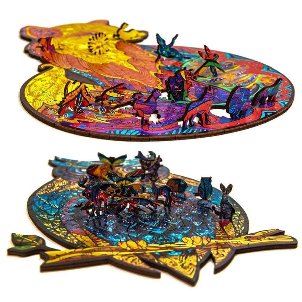 【Unregelmäßige Holzpuzzles für Erwachsene】Das tierische Holzpuzzle unterscheidet sich von herkömmlichen Puzzles. Es besteht aus Fragmenten, die wie Waldtiere und Bäume geformt sind, um ein vollständiges Puzzle aus Eule oder Löwe zu bilden. Unregelmäßige Puzzleteile sind anspruchsvoll genug, dies ist kein einfaches Spielzeug, aber wenn Sie fertig sind, werden Sie stolz sein. Das hölzerne Puzzle ist ein stressabbauendes Spielzeug für Jugendliche und Erwachsene.