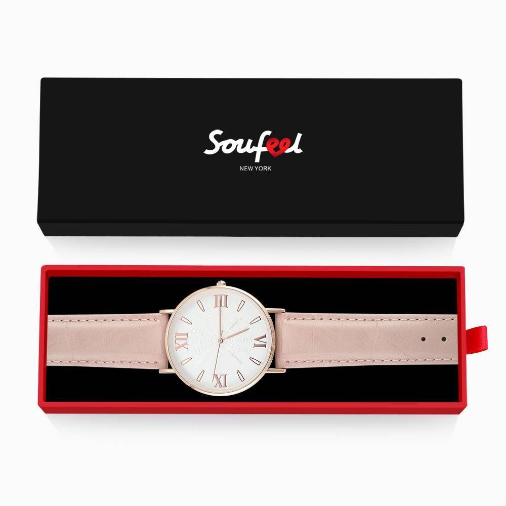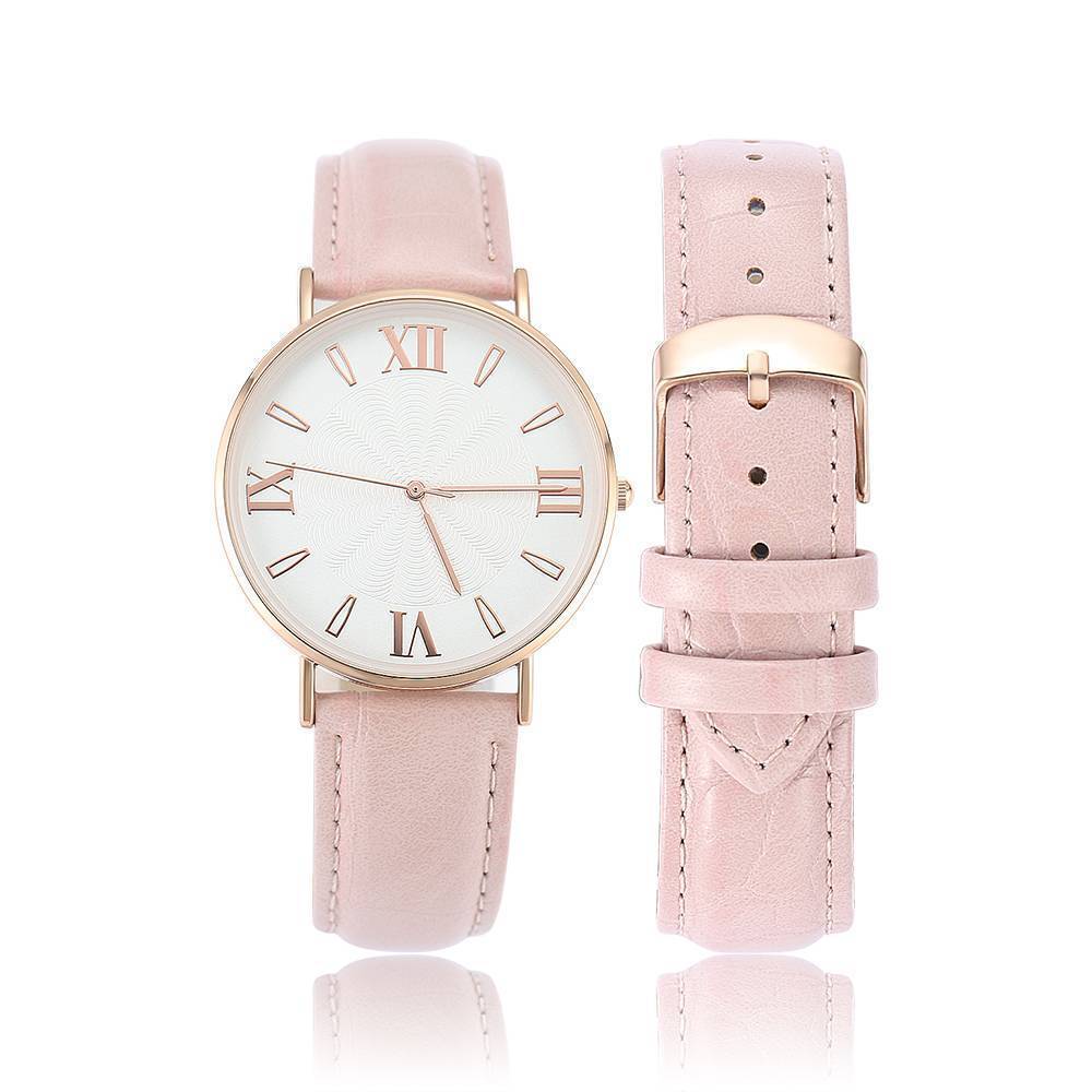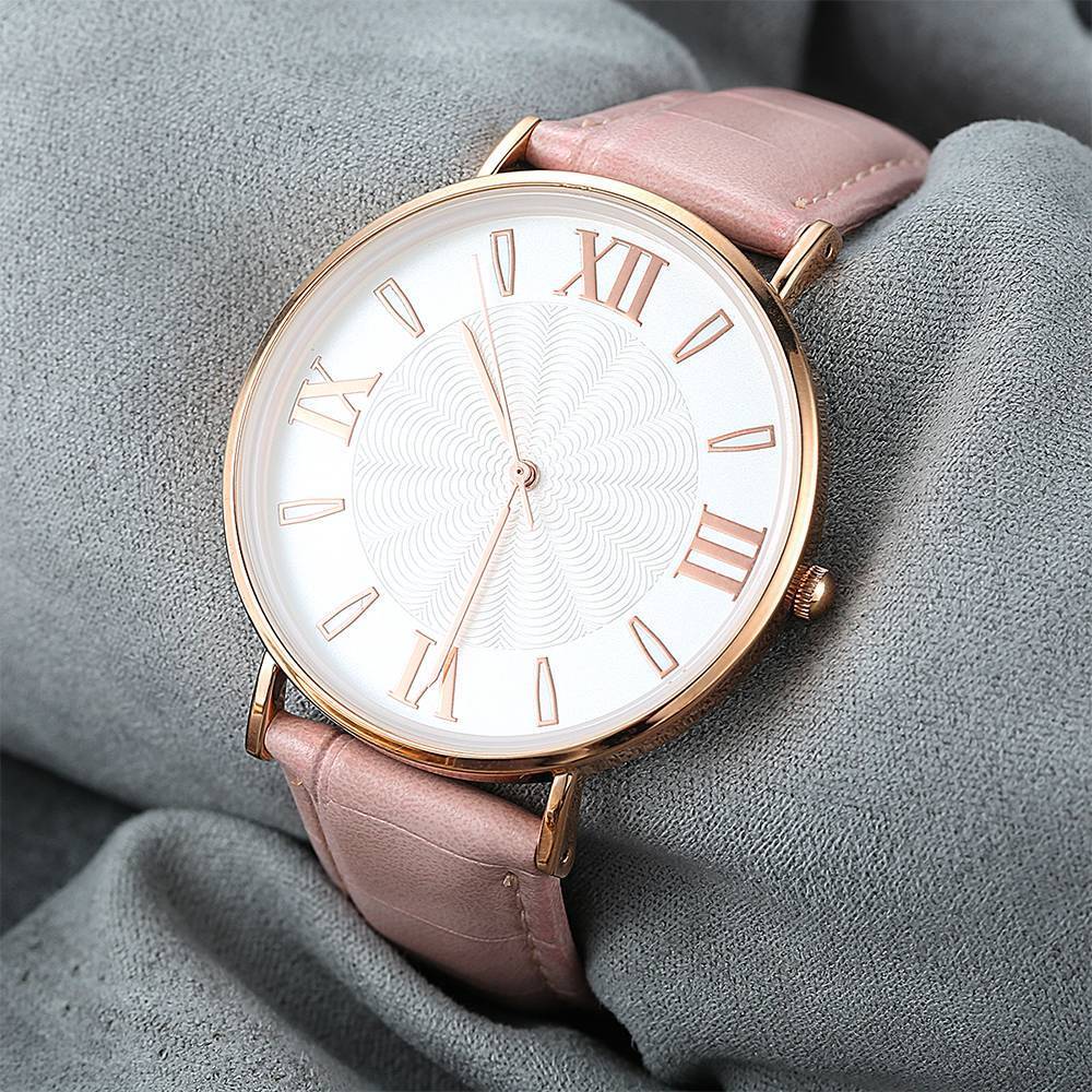 Uhr Mit Weißem Zifferblatt, Modischem Quarz, Rosa Lederarmband - Herren