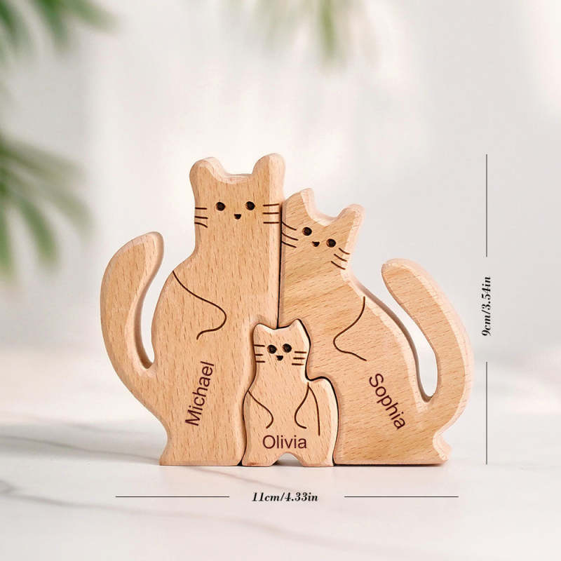 Holzkatzen Familie Individuelle Namen Puzzle Home Decor Geschenke für Paare