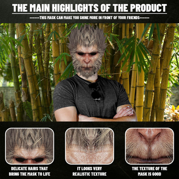 Wukong Maske Affenkönig Maske Lustige Affenmaske Halloween Maske Gruseliges Geschenk für Halloween Party Geschenke